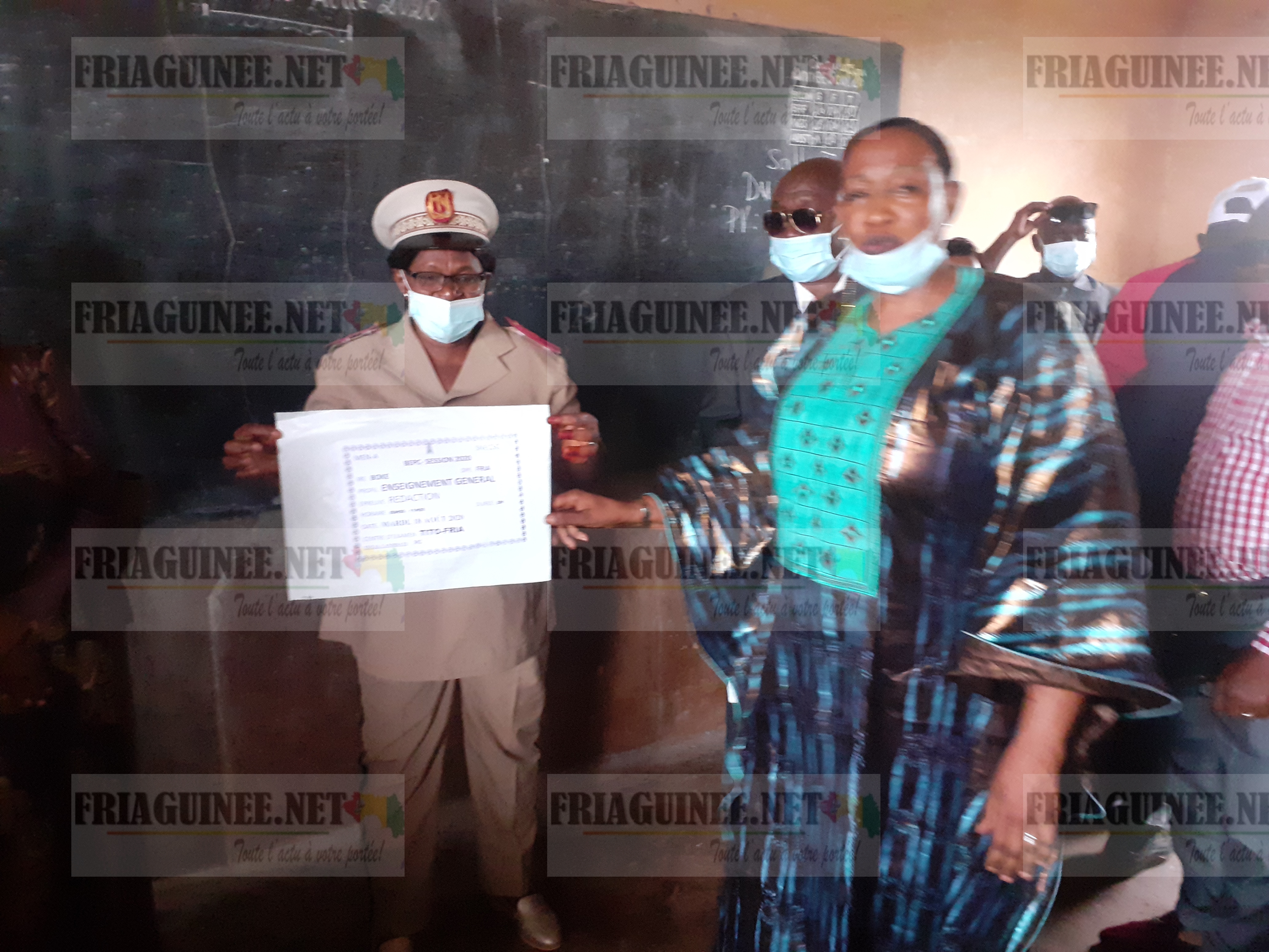 « Je remercie le tout puissant Allah de nous avoir permis de voir ce beau matin du lancement des épreuves du BEPC. Le premier constat est que la gestion des mesures barrières est bien faite, et c’est ce qui est primordial aujourd’hui à cause de la pandémie Covid-19. On sent que les élèves sont prêts à affronter les épreuves, l’encadrement est au grand complet, toutes les dispositions sont prises pour le bon déroulement de cet examen. Je demande aux enfants d’être très courageux, de comprendre que c’est une simple évaluation de passage en classe en Supérieur. Avec le sérieux, je pense que Fria fera le meilleur résultat de la région de Boké. Je leur souhaite bonne chance et invite les parents à vraiment les encourager et les motiver » a déclaré Hadja Gnalen Condé.