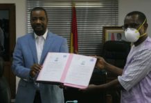Le Ministre de l’industrie et des PME, Tibou Kamara et le Représentant pays de l’Organisation des Nations Unies pour le Développement Industriel...